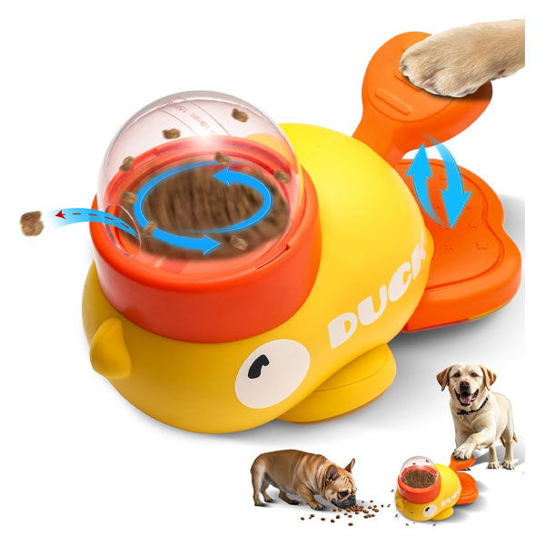 دم اردک را فشار دهید تا ظرف غذای چرخان فعال شود و خوراکیها به صورت تصادفی پخش شود