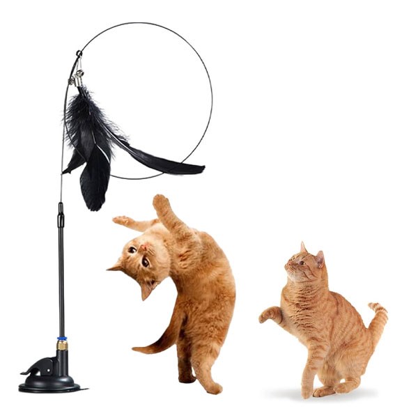 اسباب بازی گربه چوب ماهیگیری پردار با فنجان مکنده - تعداد (1 عدد)