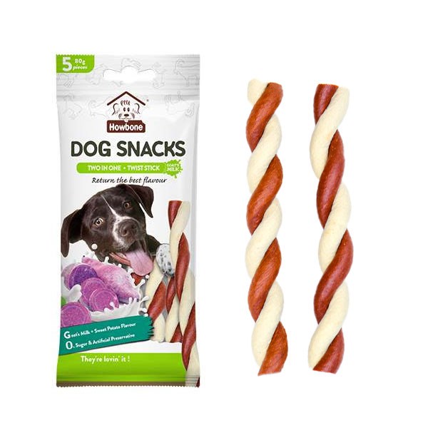 اسنک تشویقی پیچی سگ هابون طعم شیر بز و سیب زمینی شیرین - هابون (80گرم)