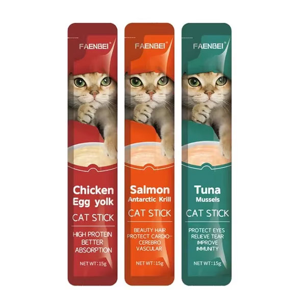 • در سه طعم : مرغ و زره تخم مرغ ، ماهی تن و صدف ، ماهی سالمون و میگو