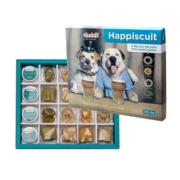 بیسکویت مهمانی چهار طعم به همراه کره بادام زمینی دودوتی - پک 1 (مارچوبه، هویج، نارگیل و اسفناج)
