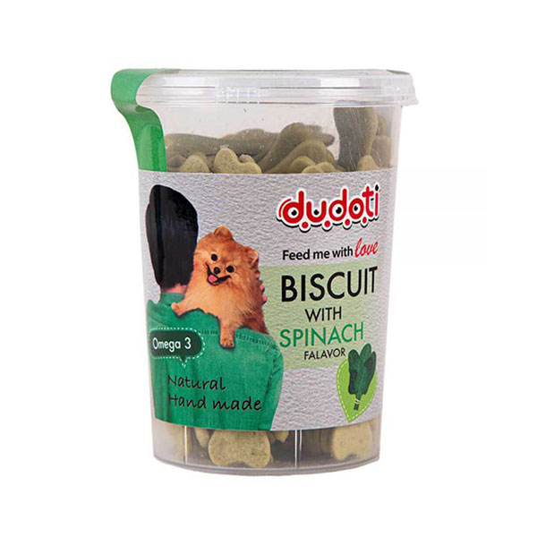 تشویقی بیسکوییت سگ دودوتی طعم اسفناج - وزن (150 گرم)