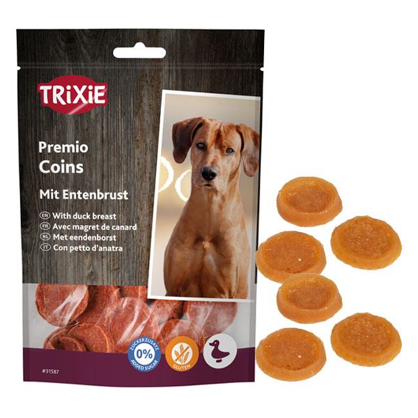 تشویقی سگ تریکسی مدل سکه ای با طعم اردک - وزن (100 گرم)