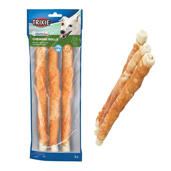 تشویقی سگ تریکسی مدل مدادی با دورپیچ مرغ - وزن (3عدد 17 سانتی متری (140 گرم))