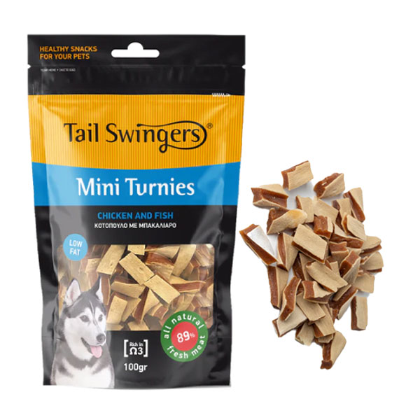 تشویقی سگ تیل سوینگرز مدل ساندویچی کوچک با طعم مرغ و ماهی - وزن (100 گرم)