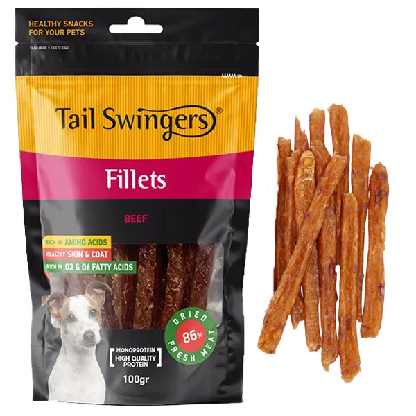 تشویقی سگ تیل سوینگرز مدل فیله نواری با طعم گوشت - وزن (100 گرم)