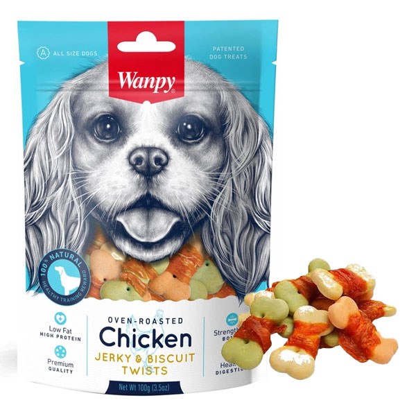 تشویقی سگ ونپی مدل Chicken Jerky Biscuit Twist - وزن (100 گرم)