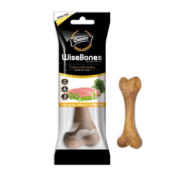 تشویقی سگ گناولز مدل استخوان طعم بوقلمون و جعفری - وزن (1عدد)
