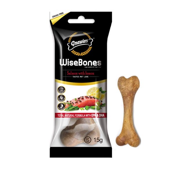 تشویقی سگ گناولز مدل استخوان طعم سالمون و لیمو - وزن (1 عدد)