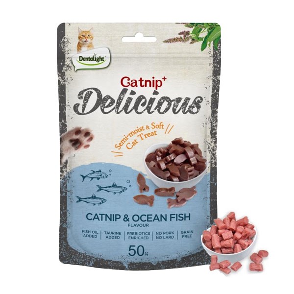 تشویقی نرم گربه دنتالایت طعم کت نیپ و ماهی اقیانوسی - وزن (50گرم)