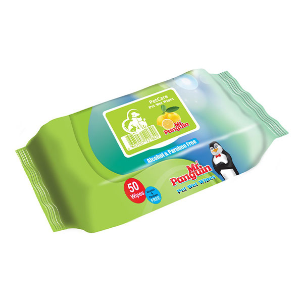 دستمال مرطوب پاکتی درب دار مستر پنگوئن رایحه لیمو - تعداد (50 برگ)