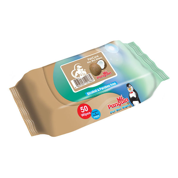 دستمال مرطوب پاکتی درب دار مستر پنگوئن رایحه نارگیل - تعداد (50 برگ)