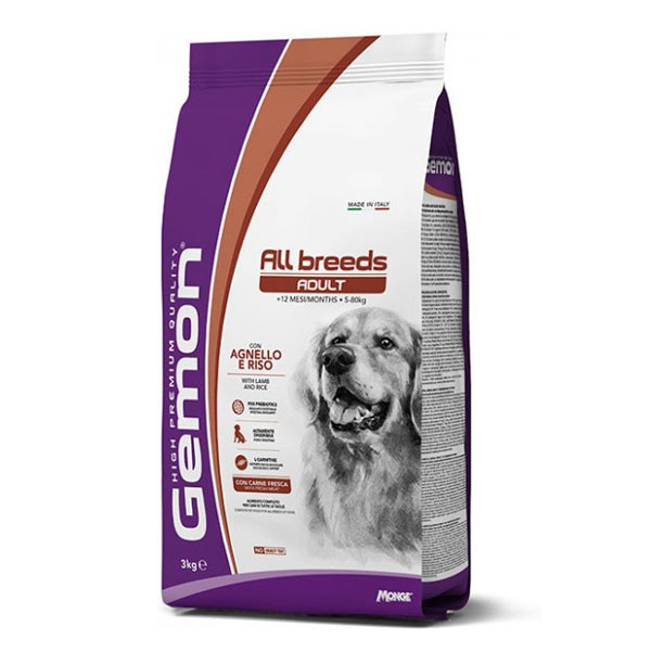 غذا خشک سگ بالغ مونژه Gemon طعم بره و برنج - وزن (3 کیلوگرم)