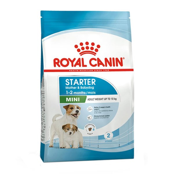 غذای توله سگ نژاد کوچک و مادر شیرده یا Mini Starter مینی استارتر رویال کنین تا سن 2 ماهگی و نیز برای مادران باردار و شیرده مناسب است.