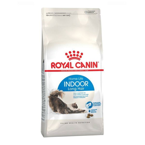 غذای گربه بالغ مو بلند خانگی رویال کنین یا ایندور لانگ هیر با در نظر گرفتن تمامی این موارد تولید شده است. به جهت پیشگیری از تشکیل گلوله مو، از مقادیر مناسب فیبر با کیفیت در این غذا استفاده شده تا به دفع بهتر موهای بلعیده شده کمک کند. قابلیت هضم بالای این محصول و استفاده از پروتئین های با کیفیت در ترکیب آن، به حفظ سلامت دستگاه گوارش و کاهش میزان مدفوع و بوی نامطبوع ناشی از آن کمک می کند. همچنین حاوی اسیدهای چرب ضروری امگا 3 EPA و DHA است که به حفظ سلامت و بهبود کیفیت پوست و مو کمک می کنند.