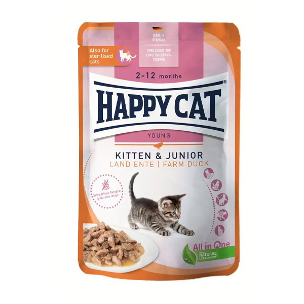 پوچ بچه گربه هپی کت طعم اردک - وزن (85 گرم)