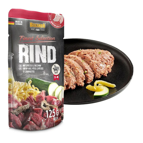 پوچ سگ بلکاندو طعم گوشت گوساله با ماکارونی و کدو سبز - وزن (125 گرم)