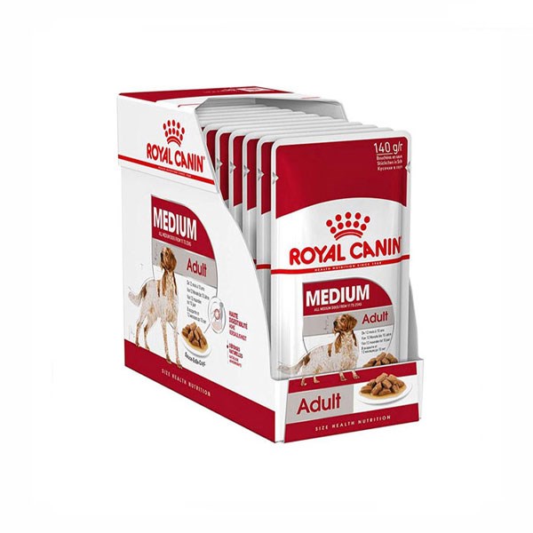 غذای پوچ نژاد متوسط یا Medium Adult Wet مدیوم ادالت رویال کنین غذایی کامل و متعادل برای سگ های 11 تا 24 کیلوگرمی بالغ است.