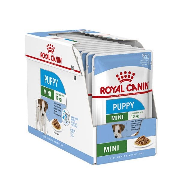 پوچ توله سگ کوچک رویال کنین یا Mini Puppy Wet مینی پاپی وت تا سن 10 ماهگی سگ هایی که وزن بالغ آنها 1 تا 10 کیلوگرم باشد، مناسب است.