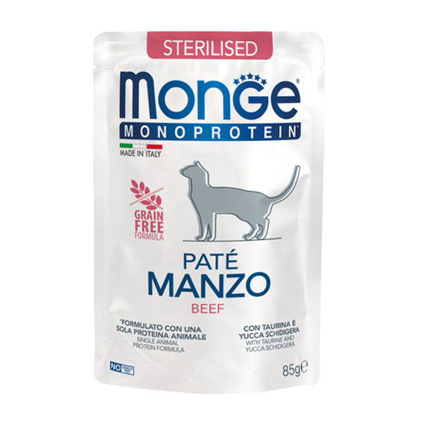 پوچ مونو پروتئین گربه عقیم شده مونژه با طعم گوشت گاو - وزن (85 گرم)