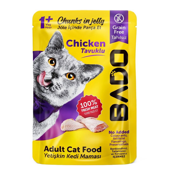 پوچ گربه بادو طعم مرغ در ژله مدل چانکی - وزن (85 گرم)