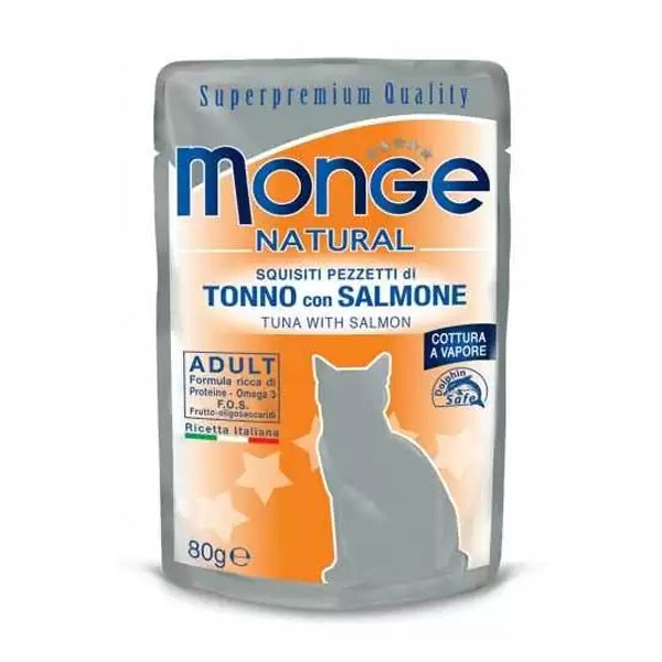 پوچ گربه بالغ مونژه با طعم ماهی تن و سالمون - وزن (80 گرم)