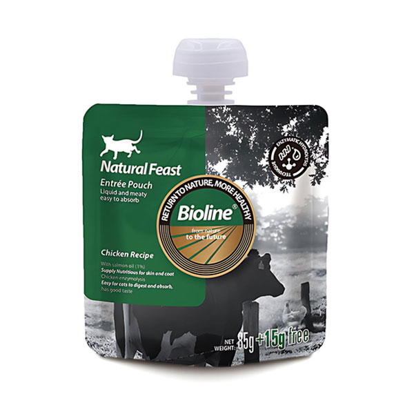 پوچ گربه بایولاین طعم مرغ - وزن (100 گرم)