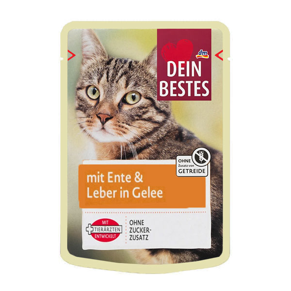 پوچ گربه دین بستس طعم اردک و جگر در ژله - وزن (100 گرم)