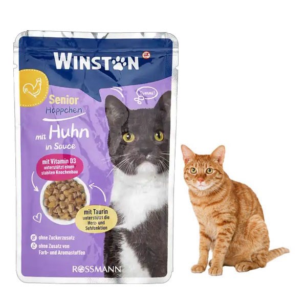 پوچ گربه سنیور وینستون طعم مرغ در سس - وزن (100 گرم)