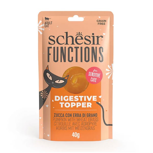 پوچ گربه شسیر فانکشن مدل دایجستیو تاپر طعم کدو حلوایی و جوانه گندم - وزن (40 گرم)