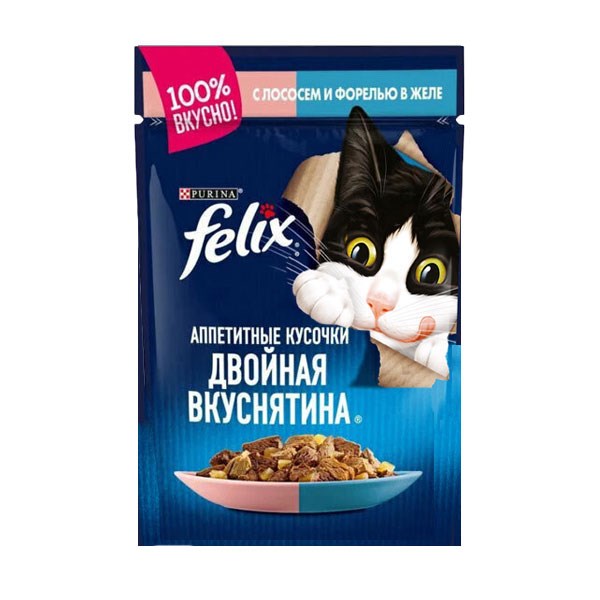 پوچ گربه فلیکس طعم ماهی سالمون و ماهی ساردین - وزن (85 گرم)