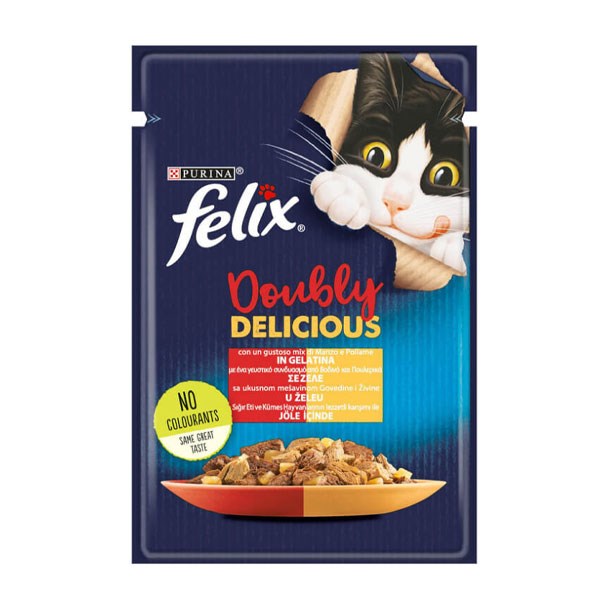 پوچ گربه فلیکس طعم گوشت گاو و مرغ - وزن (85 گرم)