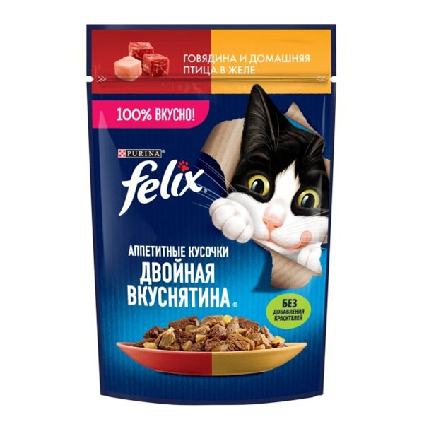 پوچ گربه فلیکس پورینا طعم گوشت گاو و مرغ در ژله - وزن (75 گرم)