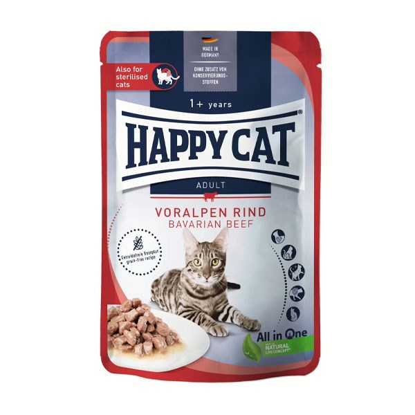 پوچ گربه هپی کت طعم گوشت گاو - وزن (85 گرم)