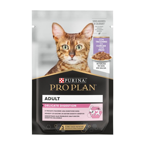 پوچ گربه پروپلن مدل دلیکیت با طعم بوقلمون (Purina Pro Plan Nutrisavour Delicate)همچنین سرشار از اسیدهای چرب امگا 3، DHA و EPA است که می تواند به کاهش ناراحتی احتمالی پوست مرتبط با حساسیت غذایی کمک کند. این اسیدهای چرب همچنین از سیستم عصبی، ایمنی و قلبی عروقی گربه شما حمایت می کنند.