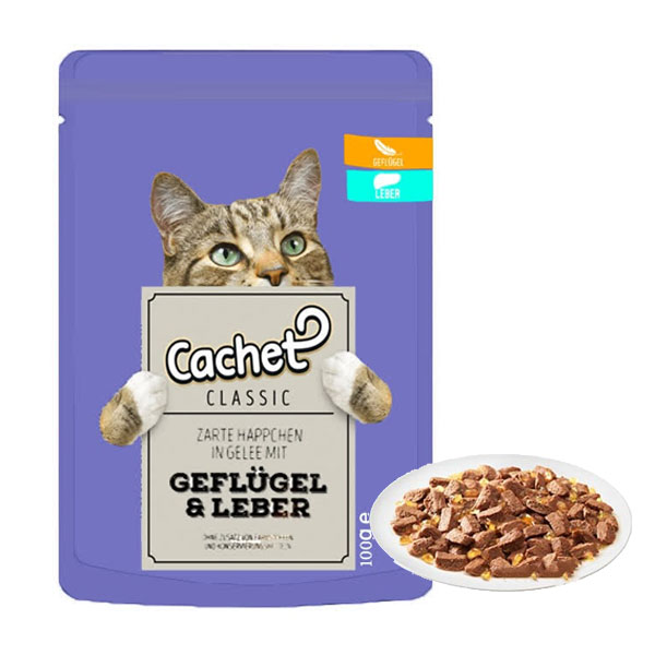 پوچ گربه کچت طعم گوشت پرندگان و جگر در ژله - وزن (100 گرم)