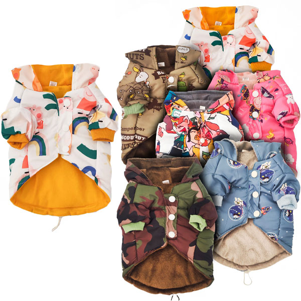 کاپشن کلاه دار سگ و گربه مدل مموری طرحدار - سایز (اسمال)