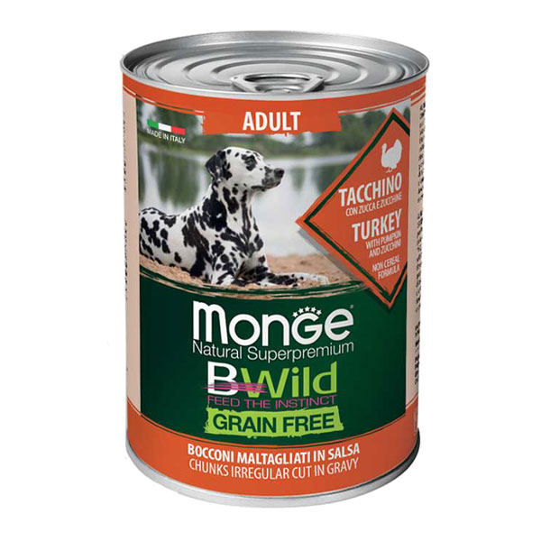 کنسرو سگ مونژه Bwild با طعم بوقلمون و کدو تنبل و کدو سبز - وزن (400 گرم)