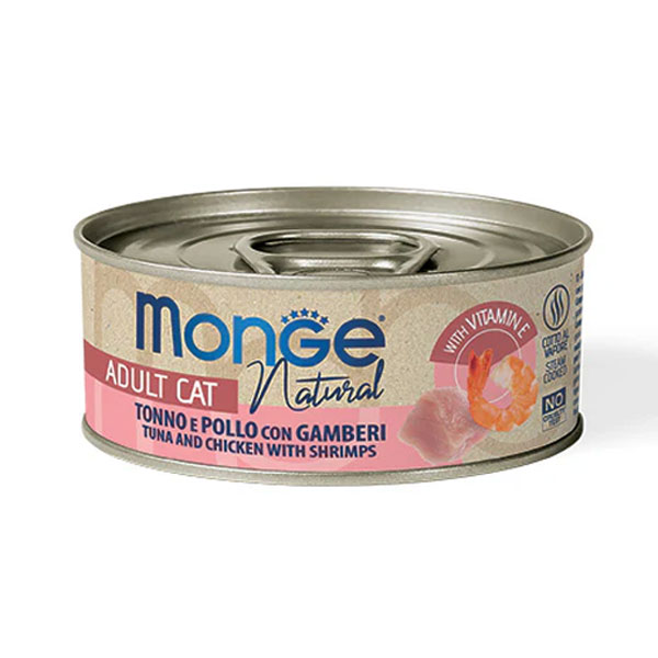 کنسرو گربه مونژه طعم ماهی تن و مرغ با میگو - وزن (80 گرم)